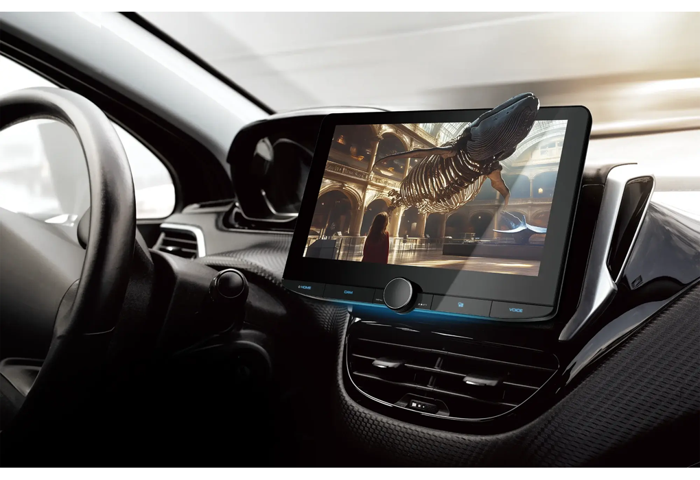 Ricevitore multimediale digitale 1DIN con pannello display flottante ad alta definizione da 10,1" e connessioni wireless avanzate per smartphone.